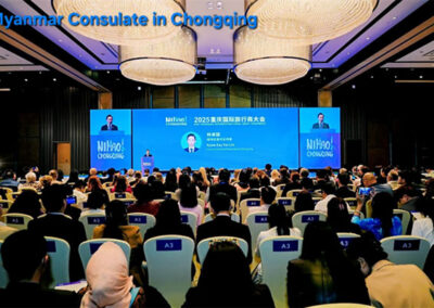 In his address, Consul General U Kyaw Zay Yar Lin emphasized the vital role of tourism in a country’s development, stating that tourism serves as a bridge connecting nations and people. He remarked that Chongqing, located at the confluence of the Yangtze and Jialing Rivers, is a truly magnificent city with mist-covered mountains, dazzling night views. He noted that many Myanmar tourists are deeply impressed by Chongqing’s natural beauty, warm hospitality, and spirit of innovation. He also extended an invitation to visit Myanmar, a land of golden pagodas, pristine beaches, and warm smiles, emphasizing that tourism represents not only about travel but also about connection, understanding, and friendship among peoples. He stated that in recent years, cooperation between Myanmar and Chongqing has continued to grow, and aimed at further enhancing closer relations, promoting mutual development, and deepening people-to-people exchanges between the two sides. He reaffirmed that Myanmar remains an open and promising destination for investment and partnership, and assured that the Consulate General of Myanmar in Chongqing stands ready to facilitate tourism and business cooperation between the two sides.