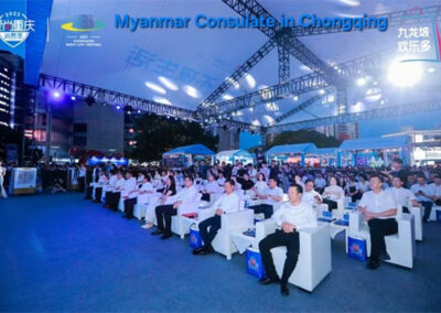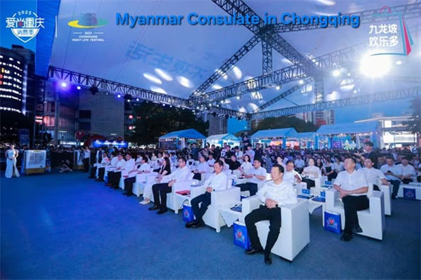 မြန်မာကောင်စစ်ဝန်ချုပ်ရုံး၊ ချုံချင့်မြို့မှ ကောင်စစ်ဝန်ချုပ် ဦးကျော်ဇေယျာလင်းသည် ၁၁-၇-၂၀၂၅ ရက်တွင် ချုံချင့်မြို့ ကျူလောင်ပိုခရိုင်၌ ပြုလုပ်သည့် 2025 Chongqing Never-Sleeping Life Festival နှင့် the 3rd Chongqing International Beer Culture Festival သို့ တက် ရောက်ခဲ့ပါသည်။ အဆိုပါပွဲတော်သို့ ချုံချင့်မြူနီစီပယ်ပြည်သူ့ကွန်ဂရက် ဒုတိယဥက္ကဋ္ဌ Mr.Zhao Shiqing၊ ချုံချင့်မြူနီစပယ်အစိုးရ တာဝန်ရှိသူများ၊ ချုံချင့်မြူနီစီပယ် စီးပွားရေးရာ ကော်မရှင် ညွှန်ကြားရေးမှူးချုပ် Mr. Zhang Yongwu ၊ ချုံချင့်မြို့အခြေစိုက် ကောင်စစ်ဝန် ချုပ်ရုံးများမှ ကောင်စစ်ဝန်ချုပ်များနှင့် ကိုယ်စားလှယ်များ၊ အခြားဖိတ်ကြားထားသည့် ဧည့်သည်တော်များ တက်ရောက်ခဲ့ကြပါသည်။ ချုံချင့်မြူနီစီပယ် စီးပွားရေးရာကော်မရှင် ညွှန်ကြားရေးမှူးချုပ် Mr. Zhang Yongwu က အဖွင့်အမှာစကားပြောကြား၍ ချုံချင့်မြူနီ စီပယ်ပြည်သူ့ကွန်ဂရက်ဒုတိယ ဥက္ကဋ္ဌ Mr.Zhao Shiqing ၊ ကောင်စစ်ဝန်ချုပ်များ၊ တာဝန်ရှိ သူများနှင့်အတူ ပွဲတော်ကို ဘီယာ သွန်းလောင်း၍ ဖွင့်လှစ်ပေးခဲ့ပါသည်။ ထို့နောက် Mr.Zhao Shiqing ၊ Mr. Zhang Yongwu နှင့် ကောင်စစ်ဝန်ချုပ်များသည် တေးဂီတများ၊ အဆိုအကဖျော်ဖြေမှုများကို ကြည့်ရှုအားပေးခဲ့ကြပြီး ပွဲတော်အတွင်း ခင်းကျင်းပြသရောင်းချ သော ချုံချင့်ဒေသထွက် စားသောက်ကုန်နှင့် လူသုံးကုန် ဈေးဆိုင်ခန်းများအား လှည့်လည် ကြည့်ရှုအားပေးခဲ့ကြကြောင်း သိရှိရပါသည်။