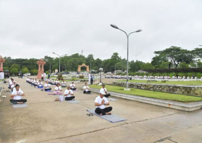U Lwin Oo and U Ko Ko Kyaw, Deputy Ministers of the Ministry of Foreign Affairs, the members of Nay Pyi Taw Council, the Government Officials from the Ministry of Foreign Affairs, the Ministry of Sport and Youth, the office of Nay Pyi Taw Council and the Ambassador of India H.E. Mr. Abhay Thakur, diplomats and staff from the Embassy of India as well as other invitees also participated in the Yoga session and celebrated the 11th International Day of Yoga altogether.