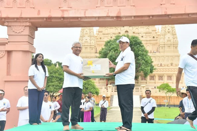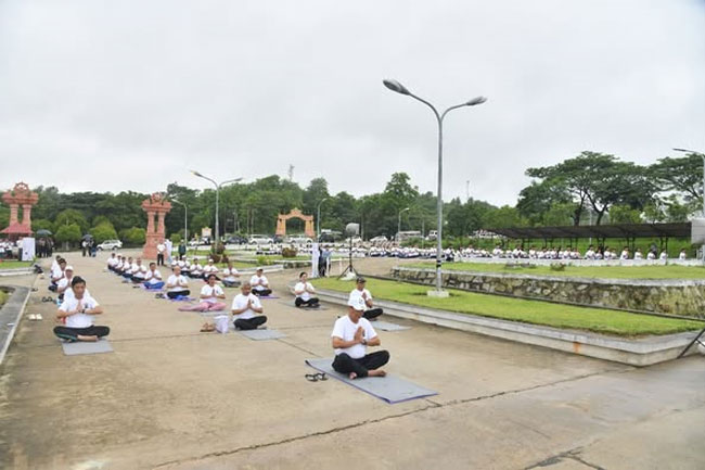 U Than Swe, Deputy Prime Minister and Union Minister for Foreign Affairs of the Republic of the Union of Myanmar, participated in the Yoga Session organized by the Embassy of the Republic of India stationed in Yangon in collaboration with the Ministry of Religious Affairs and Culture of Myanmar to observe the 11th International Day of Yoga at 06:00 AM on 15 June 2025 at the Thatta Thattaha Maha Bawdi Pagoda in Nay Pyi Taw.