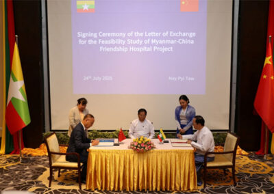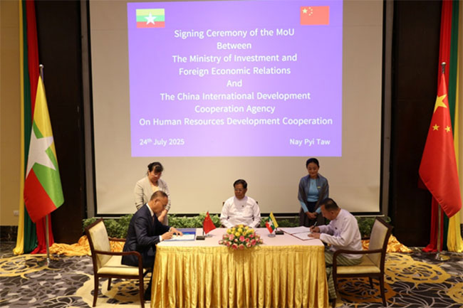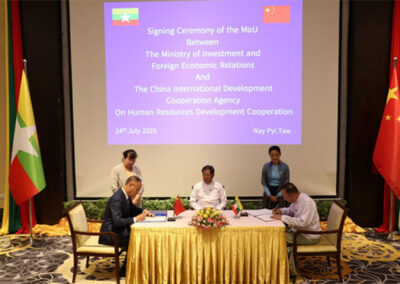Following the meeting, the Union Minister for Investment and Foreign Economic Relations and the Chairman of the CIDCA signed the Memorandum of Understanding (MoU) on Human Resources Development. Moreover, the Union Minister for Health and the Chairman of the CIDCA signed the Letter of Exchange for Feasibility Study on the China-Myanmar Friendship State-of-the-Art Specialist Hospital Project.