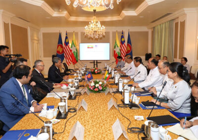 The Foreign Minister of Malaysia expressed appreciation for the comprehensive briefing by the Union Minister. He stated that this visit is intended as a constructive effort towards finding a solution to the ongoing political situation. The Minister acknowledged Myanmar as an integral part of ASEAN and supported implementation of 5PC to achieve durable resolution that is Myanmar-owned and Myanmar-led. He also reiterated to continue greater engagement and closer cooperation with Myanmar.