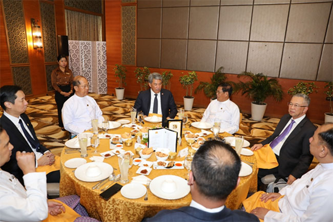 ပြည်ထောင်စုဝန်ကြီးက မလေးရှားနိုင်ငံ နိုင်ငံခြားရေးဝန်ကြီး ဦးဆောင်သည့် ကိုယ်စားလှယ်အဖွဲ့အား အစည်းအဝေးမတိုင်မီတွင် Jasmine Hotel ၌ နေ့လယ်စာဖြင့် တည်ခင်းဧည့်ခံခဲ့ကြောင်း သိရှိရပါသည်။