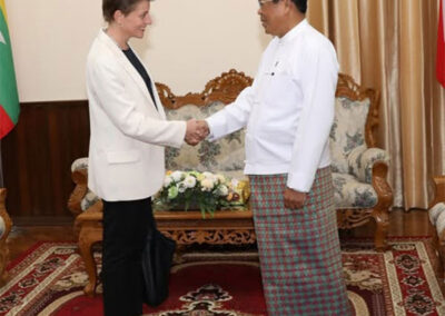 H.E. U Than Swe, Union Minister for Foreign Affairs received Ms Gwyn Lewis, United Nations Resident and Humanitarian Coordinator a.i. (UNRC/HC a.i.), at 1000 hrs on 22 October 2025 at the Ministry of Foreign Affairs in Nay Pyi Taw.