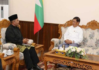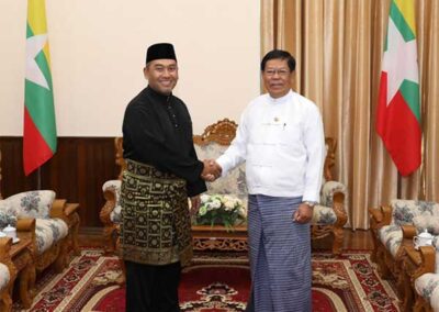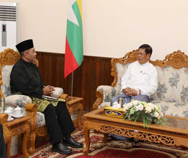 During the courtesy call, the Union Minister congratulated the Ambassador on his appointment as Ambassador Extraordinary and Plenipotentiary of Brunei Darussalam to Myanmar. They discussed matters relating to further strengthening cooperation between the two Foreign Ministries, enhancing relations between Myanmar and Brunei, and promoting mutually beneficial cooperation in various sectors, particularly, agriculture, trade, investment and labour.