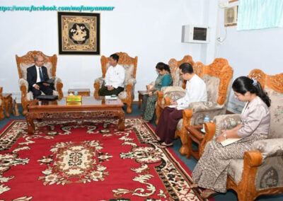 The Deputy Minister for Foreign Affairs of the Republic of the Union of Myanmar, H.E. U Lwin Oo, received the Ambassador Extraordinary and Plenipotentiary of the Federal Democratic Republic of Nepal to the Republic of the Union of Myanmar, H.E. Mr. Harishchandra Ghimire