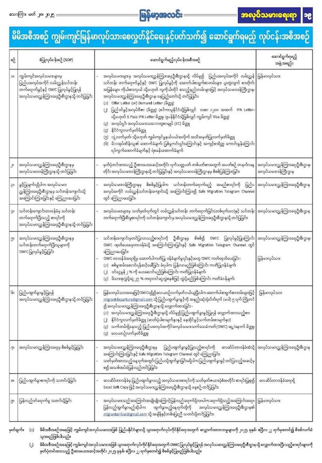 မိမိအစီအစဉ် ကျွမ်းကျင်မြန်မာလုပ်သားစေလွတ်နိုင်ရေးနှင့်ပတ်သက်၍ ဆောင်ရွက်ရမည့် လုပ်ငန်းအစီအစဉ်