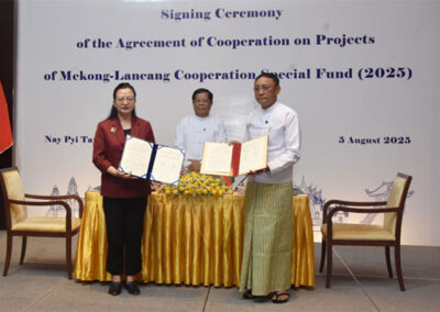 The signing ceremony of the Agreement of Cooperation on Projects of the Mekong-Lancang Cooperation Special Fund (2025) was held on the morning of 5th August 2025 at the PARKROYAL Hotel, Nay Pyi Taw.