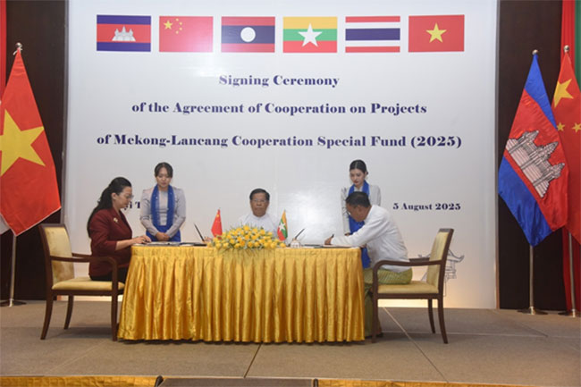 မဲခေါင်-လန်ချန်း ပူးပေါင်းဆောင်ရွက်မှုအထူးရန်ပုံငွေ (၂၀၂၅) ဖြင့် အကောင်အထည်ဖော် ဆောင်ရွက်မည့် စီမံကိန်းများအတွက် ရန်ပုံငွေလွှဲပြောင်းလက်ခံလွှာ လက်မှတ်ရေးထိုးခြင်း အခမ်းအနားကျင်းပပြုလုပ်