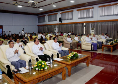 Also present on the occasion were U Naing Min Kyaw, Deputy Foreign Minister, Permanent Secretary of the Ministry of Foreign Affairs, and senior officials from relevant Ministries. The workshop was attended by around 100 representatives from the various Ministries and Departments, including Ministry of Defence, Ministry of Home Affairs, Ministry of Transport and Communication, Ministry of Foreign Affairs, as well as representatives from Myanmar Embassies and Consulates Generals located in neighbouring countries.