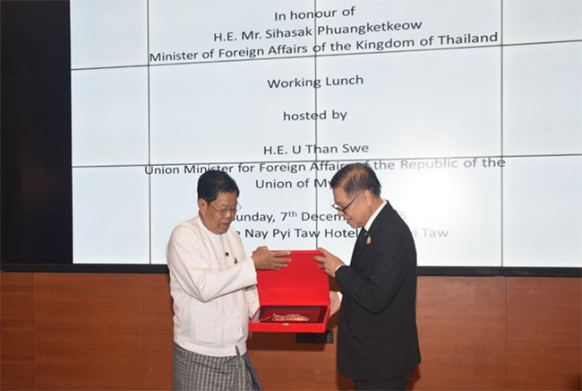 The two Foreign Ministers reaffirmed that Myanmar and Thailand are the neighbours, bound by shared cultural traditions, societal linkages, and strong economic interdependence. They noted that these natural linkages create a solid and strong foundation for enhancing partnership between the two countries.