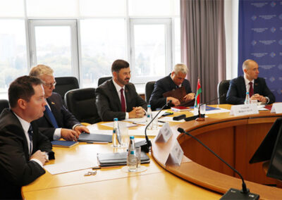 The Second Round of Myanmar–Belarus Bilateral Consultations between the Ministry of Foreign Affairs of the Republic of the Union of Myanmar and the Ministry of Foreign Affairs of the Republic of Belarus was held on the morning of 3 October 2025 at the Ministry of Foreign Affairs of Belarus. The meeting was co-chaired by H.E. U Ko Ko Kyaw, Deputy Minister for Foreign Affairs of Myanmar, and H.E. Mr. Sergey Lukashevich, First Deputy Minister of Foreign Affairs of Belarus.
